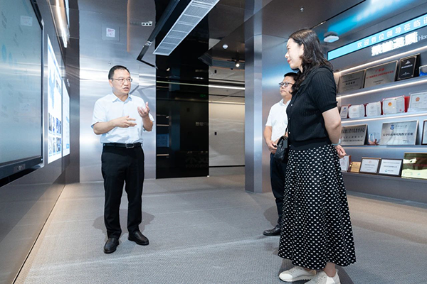 王海霞校长第一时间参观了K8凯发国际技术展厅及研发中心,在产品与解决方案经理辛保华的讲解与展示下,王校长深入分析公司开展历程、核心业务模块、前沿技术应用,以及“传递信息技术,成就客户梦想”的公司愿景,对K8凯发国际技术在ICT领域的技术实力与创新成果给予了高度评价。